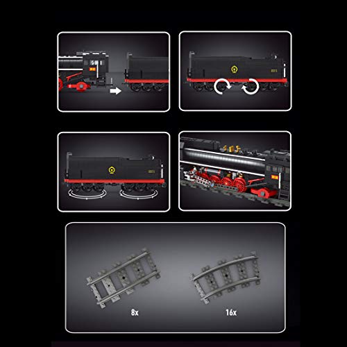 Der Bausatz enthält mehr denn 1550 Einzelteile, 24 Schiene, 2 motoren, Beleuchtungsset, 1 Fernbedienung und 1 intelligente Bluetooth-aufladbare Batterie-Box, kompatibel über Legosteinen