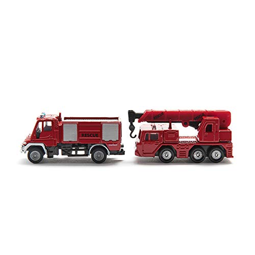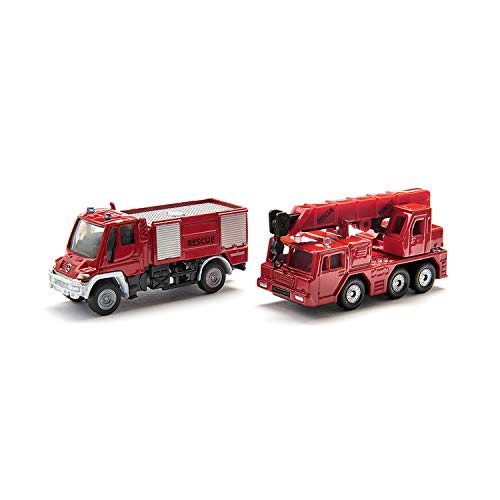 Detailliertes 2-teiliges Feuerwehr-Set sondern sämtliche Feuerwehrliebhaber bestehend sämtliche 1 Unimog und 1 Kranwagen zum Spielen und Aufschichten – Langanhaltender Spielspaß mit Bezug auf unzählige Kombinationsmöglichkeiten der Modelle, Konnektivität zu anderen Produkten von SIKU in der selben Größe – Detailgetreu und funktional: Teleskopierbarer und höhenverstellbarer Kranarm, Drehbarer Kranwagen – Perfekt zum platzsparenden Wegwischen, Langanhaltender Spielspaß mit Bezug auf unzählige Kombinationsmöglichkeiten innerhalb der SIKU Spielwelt – Lieferumfang: 1x SIKU 1661 Feuerwehr-Set, Bestehend sämtliche 1 Unimog und 1 Kranwagen, Material: Metall/Kunststoff, Abmessungen: 16 x 2,9 x 3,7 cm, Gewicht: 0,097 kg, Farbe: Rot, Anordnung: SIKU SUPER