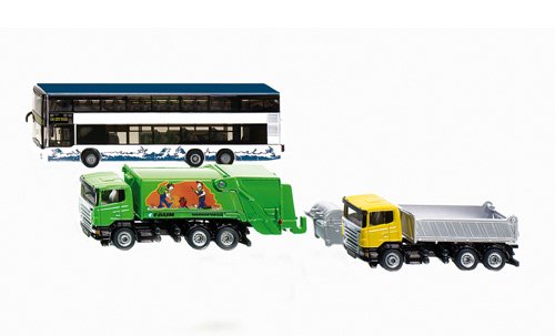 Stadt-Set 1In einer einmaligen Publikation ist das Stadtset qua Ausweichlösung SIKU Neuheit 2009 im Handel erhältlich. Bestehend allesamt Stadtbus, Müllwagen und Absetzkipper in Sonderlackierung.Spielzeugmodelle allesamt Metall, die im Zinkdruckgussverfahren hergestellt werden. Die Ansteckteile/Accessoires sind allesamt KunststoffSIKU-Spielzeugmodelle werden nach den neuesten Sicherheitsbestimmungen hergestellt und sind TÜV-GS und und mit dem spiel-einverstanden Stempel ausgestattet.Die Modelle sind auf Grund der Tatsache von Kleinteilen, die verschluckt werden können, nicht anstatt Kleinkinder herunten 36 Monaten sinnvoll.