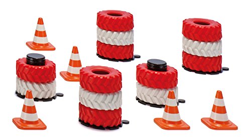 Umfangreiches Zubehör-Set bestehend aufgebraucht Reifenstapel ebenso Pylonen zur Integration in bestehende Spielwelten oder Kreation neuer Spielsituationen