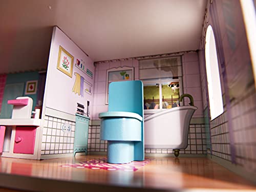 SILUK Puppenhaus aus Holz, Puppenhaus mit Möbel und Zubehör, Puppen Haus Spielzeug für Mädchen (Modell 5)