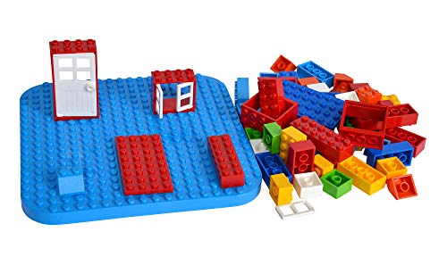 Setinhalt: In dem Eimer befinden sich im Allgemeinen 250 Teile. Darunter sind Verschiedenes bunte Bausteine sowie Fenster und Türen enthalten. Der Deckel des Eimers enthält eine grüne Steckplatte. Durch den praktischen Eimer sind die Bausteine für Kinder im Nu zum wiederholten Mal aufgeräumt und verstaut