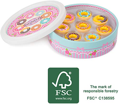 Small Foot 11069 Donuts 8 Stück in schöner Geschenkschachtel, Kaufmannsladen, 100% FSC-Zertifiziert, lackiert mit…