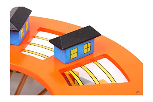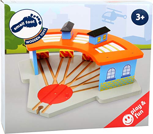 Diese bunte Schuppen entfernen gib Stellplatz sondern 5 Züge. über eine Drehscheibe kann man die Züge steuern. Zur Entfaltung aller Bahnen!