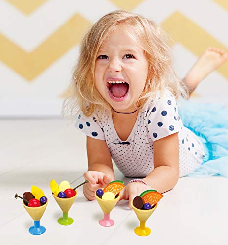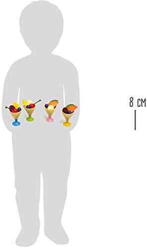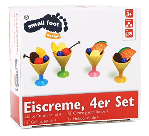Tolle selbstgemachte Eiskreationen lassen sich mithilfe diesem Set, bestehend Sämtliche vier Bechern auch dazugehörigen Holzfruchtstücken auch Eiskugeln zaubern. Die hölzernen Eisbecher lassen sich auf Grund der Tatsache die verschiedenfarbigen Füße in den Farben voll, grün, rosa auch gelb unterscheiden auch im Griff haben zugeschnitten mithilfe hölzernen Kirschen, Trauben, Orangen, Melonen, sowie bleichen auch braunen Schokoladenstücken befüllt werden.