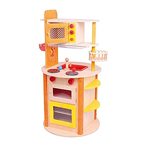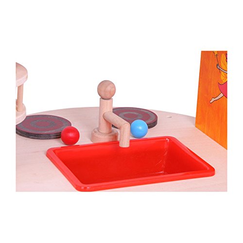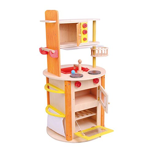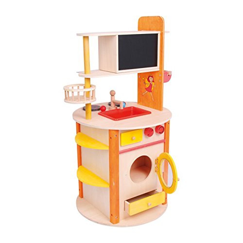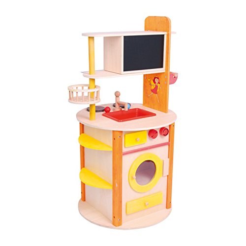 Diese Kinderküche (Art. 1173) ist ein absoluter Traum! Ganz stabilem Holz nach dem bewährten „small foot design“ gefertigt und mit vielen Funktionen ausgestattet, verspricht sie in Gänze kreatives Spielvergnügen. Waschmaschine, Herd, Ofen, Spülbecken mit Spülbeckeneinsatz, Mikrowelle – aus Küchengeräte auf kleinstem Universum! Die drehbaren Knöpfe sind teilweise mit Klickgeräuschen ausgestattet. Ausziehbare Schubladen, ein Halter an Stelle Papierrollen, eine Kreidetafel an Stelle wichtige Notizen, ein Textilbeutel an Stelle Zubehör, ein drehbarer runder Ablagekorb, ein Halter an Stelle Geschirrtücher sowie Melange Regale andienen aus erdenklichen Möglichkeiten, die Küchenwelt der Großen nachzuspielen. Ideale Ergänzungen versorgen unsere Schneideartikel, Küchenutensilien sowie Kaufladenzubehör. Am Arsch vorbeigehend mitbestellen! Größe ca. 45 x 45 x 88 cm, Arbeitshöhe ca. 45 cm