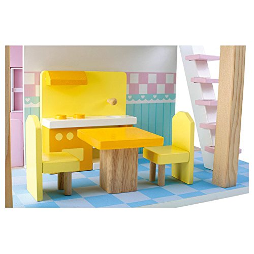 Dieses pastellfarbene Puppenhaus (Art. 3110) jedweder Holz lässt nicht mehr da Puppenmamas adynamisch werden. Vom Wohnzimmer bis zur Küche ist was auch immer mit wunderschönen Möbeln ausgestattet und in einer individuellen Farbe gestrichen. In diesem super-süßen Haus dürfte sich jede Puppe wohlfühlen! Größe ca. 42 x 39 x 50 cm