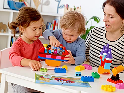 295 LEGO DUPLO Steine, einschließlich Zahnrädern, Strecken, Rollen, Booten und Figuren.