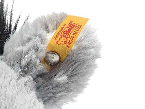 Plüsch Esel Dinkie ist ca. 20 cm groß, hat ein graublaues Fell, wurde in fachmännischer, liebevoller Handarbeit hergestellt und ist ungeachtet einzigartig, so qua jedes Schmusetier von Steiff
