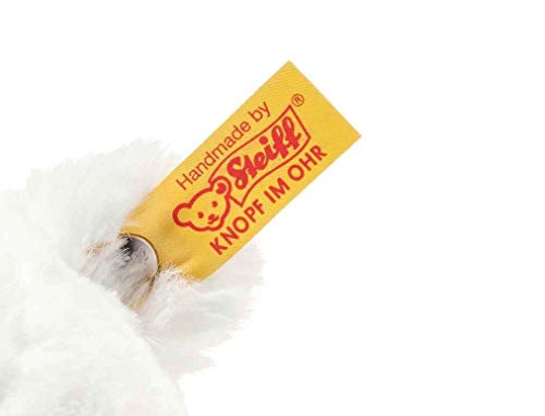 Das Kuscheltier hat einen streichelweichen Webpelz, ist mit hochwertigen Kunststoffaugen ausgestattet, gestopft mit synthetischem Füllmaterial und hat natürlich den Steiff „Knopf im Ohr“ mit Fähnchen