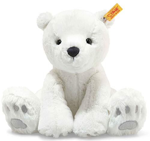 Steiff „Knopf im Ohr“! Er wird von allen geliebt: Der 28 cm große Soft Cuddly Friends Lasse Eisbär von Steiff ist mit seinem kuschelweichen weissen Plüschfell der optimale Schmusepartner. Herrlich fühlt es sich an, wenn man sich an ihn schmiegt. Die süsse Stupsnase ist ganz schwarzem Plüsch. Der Mund und der Nasensteg sind wunderschön in schwarz gestickt. An den vier Tatzen erkennt man die Abdrücke in grau. Im Hinterteil, den Armen und Beinen sind Granulatsäckchen für besten Halt eingearbeitet. Die Margarete Steiff GmbH ist die weltweit bekannteste Spielzeug- und Plüschtierherstellerin und steht für höchste Qualität seit 1880. Der Leitgedanke unser Firmengründerin Margarete Steiff „Für Kinder ist Aber das Beste okay genug“ ist unsere Firmenphilosophie und prägt unsere akademische Arbeit sowie jedes unserer Produkte. Allesamt unsere Tiere werden von Hand genäht und sind somit einzigartig. Jedes original Steiff Tier trägt voller Stolz den Steiff „Knopf im Ohr“ und zusätzlich qua weiteres Erkennungszeichen ein Ohrfähnchen. Das ist der Beweis, dass es ganz unserem Hause stammt. Steiff Tiere – Aber echt mit dem Steiff „Knopf im Ohr“.