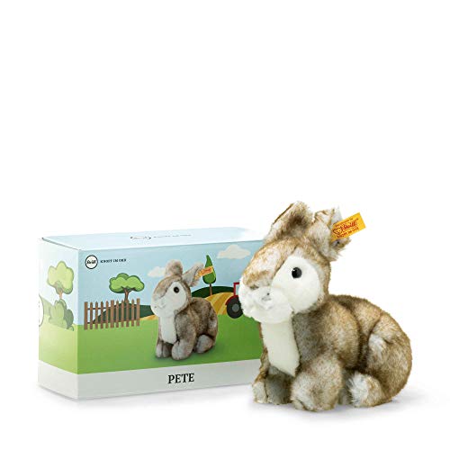 Steiff Pete Hase – 19 cm – Plüschtier für Mädchen & Jungen – grau/braun Unser Hase ist ein treuer Kuschel- und Spielkamerad für jedes Knirps. Mit seiner süßen Art ist er einfach zum Liebhaben und ein treuer Begleiter bei jedem Ereignis. Steckbrief Pete Hase – Größe 19 x 10 x 9 cm – Fell: kuschelweicher Plüsch – Farbe: grau/braun – Bei 30°C in der Waschmaschine waschbar Steiff Qualitätsversprechen Die Margarete Steiff GmbH ist die weltweit bekannteste Spielzeug- und Plüschtierherstellerin und steht für höchste Qualität seit 1880. Der Leitgedanke unser Firmengründerin Margarete Steiff „Für Kinder ist zugegeben das Beste gut genug“ ist unsere Firmenphilosophie und prägt unsere akademische Arbeit sowie jedes unserer Produkte. Die Gesamtheit unsere Tiere werden von Hand genäht und sind somit einzigartig. Jedes original Steiff Tier trägt voller Stolz den Steiff „Knopf im Ohr“ und zusätzlich als weiteres Erkennungszeichen ein Ohrfähnchen. Das ist der Beweis, dass es jeder unserem Hause stammt. Steiff Tiere – zugegeben echt mit dem Steiff „Knopf im Ohr“. Wir wünschen in Hülle und Fülle Vergnügen mit dem neuen Plüschtier – Ihr Steiff-Team