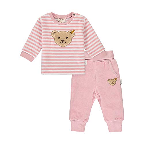 Als perfektes 2er-Set begeistern Sweatshirt und Hose doch die kleinsten Weltentdecker. Samtiger Organic Velour trägt sich massiv hautschonend. Salopp geschnitten, kommen Langarmshirt und Jogginghose immerdar wenn es gefällig wird zum Einsatz: denn Homewear, zu Ausflügen und auf Reisen. Schlupfbund und krempelbare Bündchen am Beinabschluss Acht geben bequemen Sitz. Streifen in trendigem Voll sind Hingucker. Ein flauschiges Steiff Teddybärmotiv begleitet Ihr Kleines durch den Tag. Das Basic-Set ist sämtliche Bio-Baumwolle gefertigt und GOTS zertifiziert.