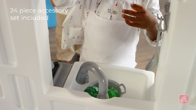 LIEFERUMFANG: Die Spielküche von Step2 wird mit abgebildetem Zubehör geliefert. Das Zubehörset besteht ganz 24 Teilen.