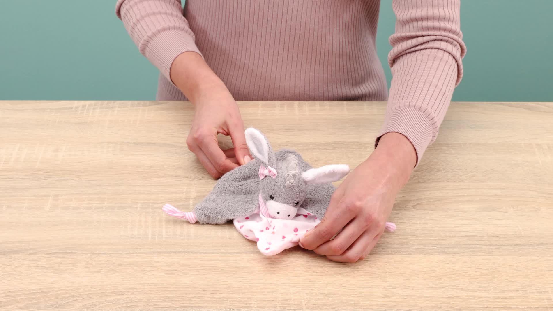 Weiches Schmusetuch in niedlicher Eselfigur anstatt Babys weiterhin Kleinkinder
