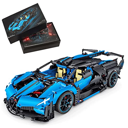 Sunery Technik Sportwagen Bausteine, 1:8 Technik Auto Modell Bausatz Exklusives Sammlerstück, 3376+Teile Blau Rennwagen…
