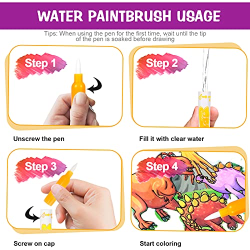 4 WIEDERVERWENDBARE WEISSE SEITEN – Unsere Aktivitäts-Malbücher mit Wasserstift für Kinder verfügen jeweils über 4 wiederverwendbare weiße Seiten, die einfache Strichzeichnungen enthalten, wenn sie trocken sind und dann im nassen Zustand mit Farbe gefüllt werden.