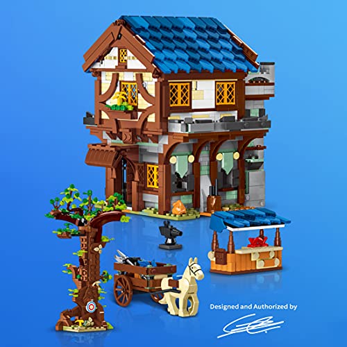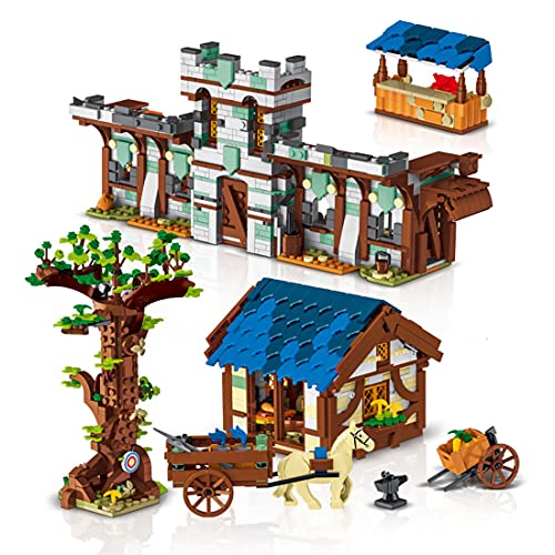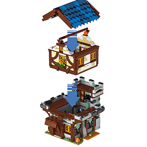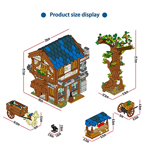 .Bauen Sie Ihr eigenes Straßenbild. Im Großen und Ganzen 1724 Teile. Das Biulding-Modell steckt voller Details. Das qua Stadtmauer zerlegbare Haurs mit Bäumen, Kutschen, Karren und anderen mittelalterlichen Marktszenen.