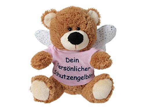 Hochwertiger Plüsch Teddy mit Schlaufe im rosa T-Shirt „Dein persönlicher Schutzengelbär“