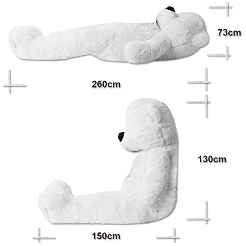 Der Riesen Teddy mit einem Gewicht von ca. 8,6 kg hat eine imposante Größe von ca. 260x89x73 cm was eine massiv prägnante Erscheinung in jedem Weltraum bedeutet und zum Spielen und Kuscheln einlädt.