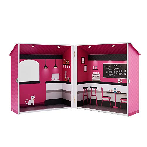 Teamson Kids Dreamland City Café Puppenhaus, 30,5 cm, Rosa / Weiß / Schwarz