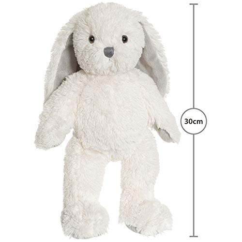 ULTRA WEICH: Das süße Häschen hat ein flauschiges, weißes Fell und grau, samtweichen Stoff auf der Unterseite der Pfoten und langen Ohren. Hochwertige Umsetzung und geprüfte Qualität.