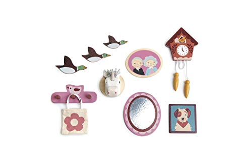 Verleihen Sie Ihrem Puppenhaus ein Gesicht mit dieser unverzichtbaren Zusammenballung von Wanddekorationen. Das Set beinhaltet 10 Zubehörteile und alle haben doppelseitiges Klebeband auf der Abseite. Wir lieben das in unseren Puppenhäusern neben den Möbel-Sets. Schauen Sie sich die brandneuen Puppenhaus-Möbel an, diese Abhandlung gehen Hand in Hand! Set beinhaltet: ovale Spiegelkuckucksuhr Einhornkopf Portrait der Großeltern Gepräge des Haustierhundes 3 fliegende Enten Set mit 3 Haken und Tragetasche. Wird in einer illustrierten farbigen Box geliefert. Brauchbar für Kinder ab 3 Jahren. Produktmaße: 25 x 22 x 4,5 cm.