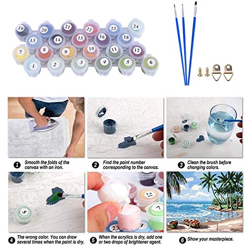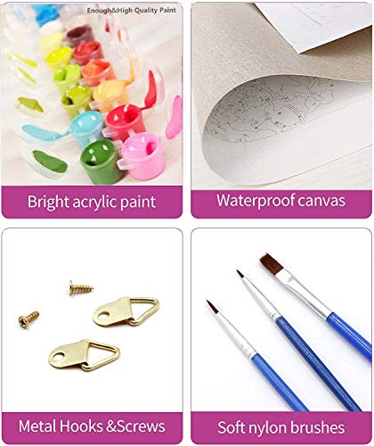 【Einfach Pre-printed Textured Canvas】High density canvas is durable and easy to color; Genug Farbabdeckung, um die Linien und Zahlen abzudecken; Wir haben empfohlen, einen weißen Stift oder weiße Buntstifte zu verwenden, um die Zahlen zuerst zu bedecken, wenn die Farbe hell ist.Diese Zahlenmalerei eignet sich für alle Schwierigkeitsgrade, egal ob Sie gut oder schlecht zeichnen können. Malen Sie einfach die Leinwand mit den entsprechenden Zahlenfarben.