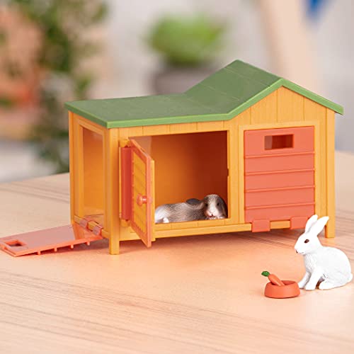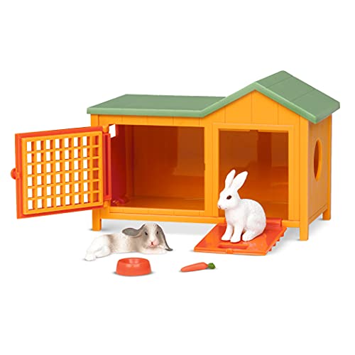 Terra Hasenstall 5-teilig Spielzeug Set – 2 Hasen, großer Stall, Karotte und Futternapf – Tierfiguren und Zubehör…