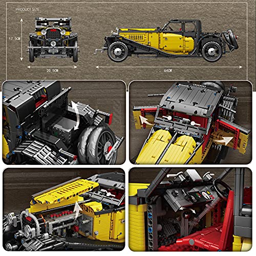 Der gelb-schwarze Oldtimer verfügt über einen Schaltmodus auf der Fahrerseite, Motorraum- und Gepäckraumöffnungen und ein klassisches Vordertür-Design. Bekannt als präsentiert mit einem schönen Aufkleber.