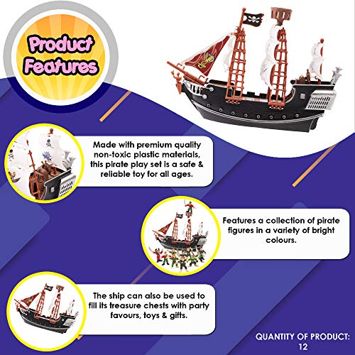 Premium-Qualität – Hergestellt jeder hochwertigen, ungiftigen Kunststoffmaterialien, ist das Piratenschiff ein sicheres und zuverlässiges Spielzeug. Unser Set besteht jeder einer bunten Kollektion von Plastik-Piratenfiguren in einer Vielfältigkeit von leuchtenden Farben und Charakteren, die mit vollen Raider-Ornamenten bekleidet sind, was viele lustige Stunden des Piratenspiels garantiert. Ein langlebiges, starkes Produkt.