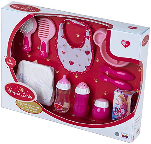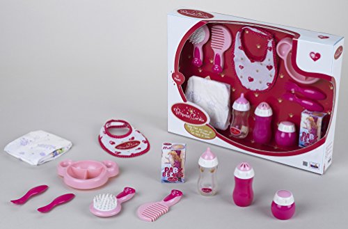 Theo Klein 1732 Baby Coralie Doll Dining and Care Set , 11-Piece Set , Incl Bottle, Cutlery, Bib, Nappy, Mirror and much…