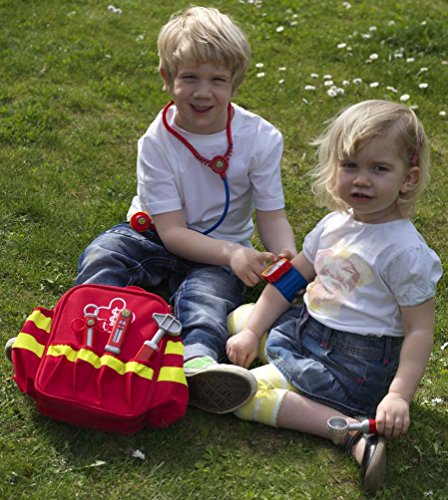 Der Rettungsrucksack von Theo Klein ist fix gepackt, schnell an jeden Rücken angepasst und für jeden Einsatz bereit. Ob die kleinen Einsatzkräfte Fieber messen, Reflexe testen oder Spritzen geben müssen – sie haben alle medizinischen Instrumente dabei. Das Besondere an diesen ist nicht nur die hochwertige Qualität. Sie sind auch optimal an Kinderhände angepasst, fühlen sich gut an, sehen hübsch bunt aus und bereiten mit den freundlichen Smileys Kindern sehr viel Spaß. Arztspiele gehören zu den beliebtesten Rollenspielen bei Kindern. Sie verarbeiten damit ihre Erlebnisse in Arztpraxen und das spielerisch und sehr kreativ. Der Notarzt-Rucksack wurde dafür von Theo Klein nach jahrzehntelanger Erfahrung und Entwicklungsarbeit liebevoll und komplett ausgestattet.