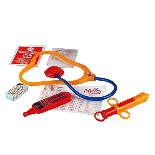 Doktorköfferchen, halbrund, klein. Doktorkoffer mit Hilfe von zahlreichem Ergänzung, qua z.B. Stethoskop, Spritze ansonsten Thermometer.