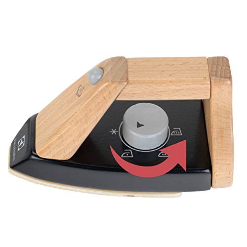 Nichts für Holzköpfe! Dieses Spielzeug-Bügeleisen hat nämlich alles, was Kinder, die Mama und Papa nacheifern wollen, brauchen. Es sieht schick und modern aus, hat einen abgerundeten, optimal an Kinderhände angepassten Griff und wird natürlich zu keinem Zeitpunkt des fantasievollen Spiels heiß. Das Elektrolux-Bügeleisen ist aus Holz gefertigt, das aus nachhaltig bewirtschafteten, zertifizierten Wäldern stammt. Das Miniatur-Maschine ist zudem so hochwertig und solide verarbeitet, dass es viele Jahre, Kinderhände und Spiele überlebt. Das macht es nicht ungeachtet zu einem außergewöhnlich umweltfreundlichen Spielzeug, das ideal für Imitations- und Rollenspiele ist, sondern vulgo zu einem futuristischen.
