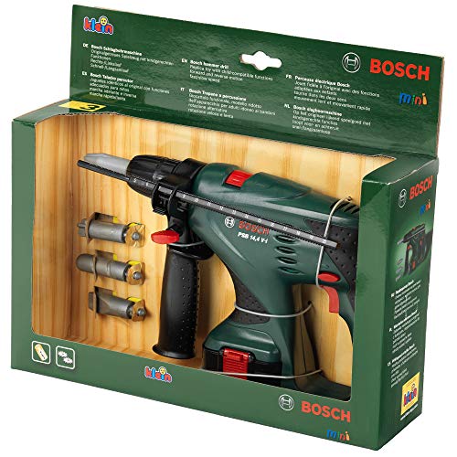 BOSCH Bohrhammer. Aus hochwertigem Kunststoff. Im original- und detailgetreuen Design. Mit diesem Bohrhammer können die kleinen Handwerken wie die großen bohren. Batteriebetrieben. Für Kinder ab 3 Jahre.