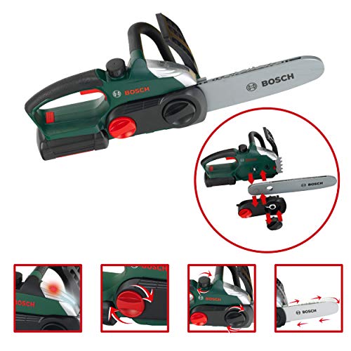 Die Kettensäge mit Licht- und Soundfunktion ist originalgetreu im Bosch-Design gebaut