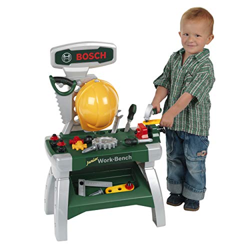Die Werkbank Junior im Bosch-Design ist aus hochwertigem Kunststoff, sehr stabil und robust gebaut. Zur abwechslungsreichen und vielfältigen Ausstattung gehört neben dem Handwerker-Helm eine Arbeitsplatte an der Kinder schrauben, drehen, hämmern, sägen und feilen können. Alles, was sie dafür brauchen, liefert Theo Klein gleich mit: hochwertiges Werkzeug und Zubehör mit abgerundeten Kanten, kindgerechten Formen und Passgenauigkeit für kleine Hände für Spiel und Spaß. Diese fördern spielerisch bereits die Entwicklung der kleinsten Kinder: Beim Schrauben und Werken schulen auch schon Zweijährige ihre Feinmotorik, ihr räumliches Vorstellungsvermögen und technisches Verständnis.