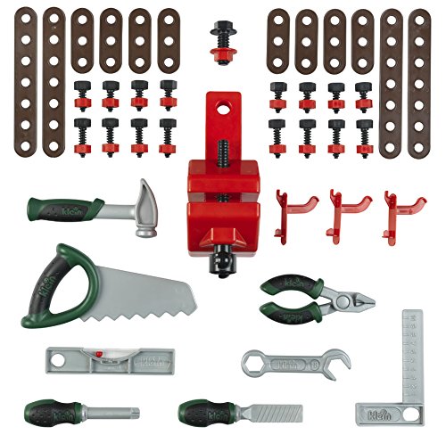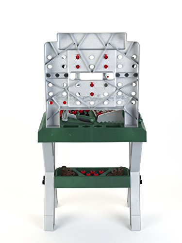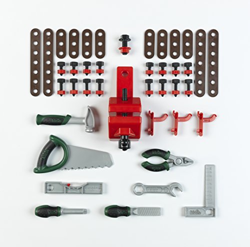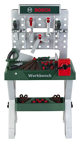 BOSCH Werkbank mit 56-teiligem Zubehörset (bestehend aus vielen Werkzeugen wie z.B. Hammer, Säge, Schraubenzieher etc. sowie zahlreichen Leisten und Schrauben zum Zusammenschrauben), angebrachtem Schraubstock
