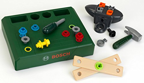 Diese Tischwerkbank ist genau richtig für den ersten Umgang mit Werkzeugen. Die Löcher in der Arbeitsplatte sind farblich umrandet Dem kleinen Handwerker ab einem Jahr stellen sich Aufgaben in den Bereichen Form und Farbzuordnung sowie Auge-Hand-Koordination