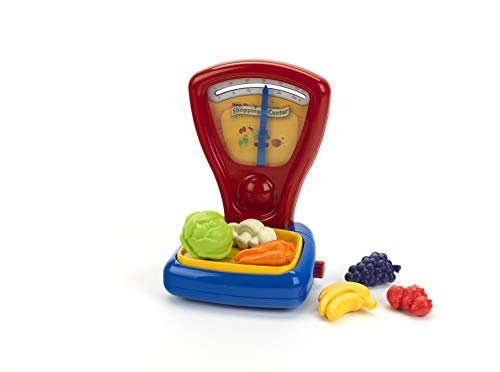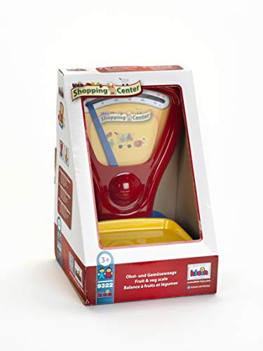 Obst- darüber hinaus Gemüsewaage – mithilfe klassischer Gewichtsanzeige – Wiegeablage vertieft sich beim Auswiegen – Gewicht von Vorder- darüber hinaus Abseite sichtbar – fördert das Rollenspiel