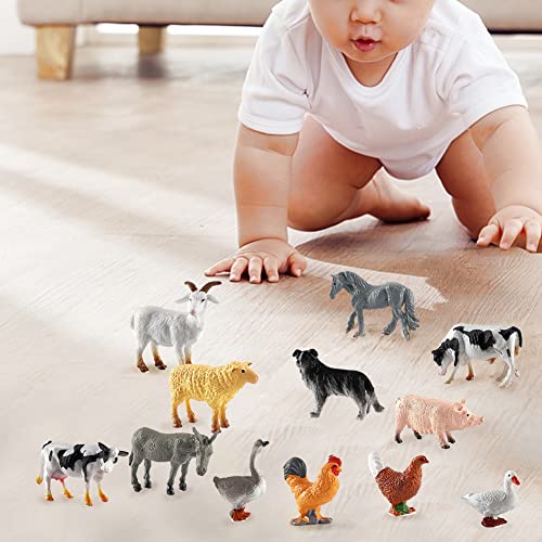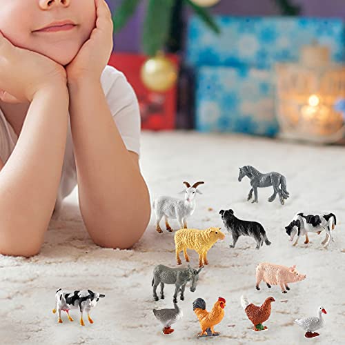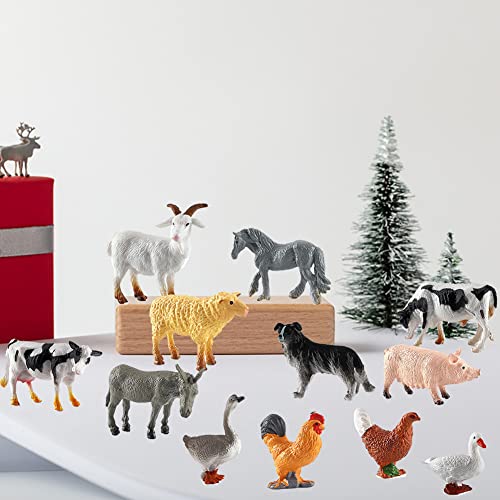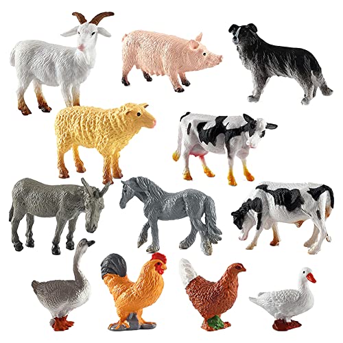 Schöne und Realistische: 12Pcs Mini Bauernhof Tierfiguren. vorsichtig geschnitzte, lebensechte Spielzeuge umfassen Kühe, Hühner, Enten, Pferde, Schweine, Esel, Ziegen, Gänse, Hunde und alternative Tiere.