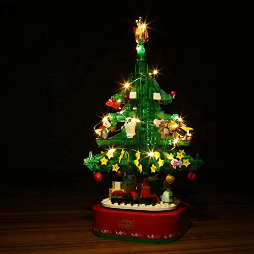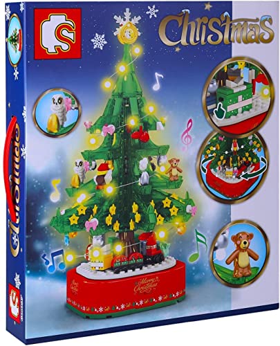 🎄 Weihnachtsbaum-Modellbausatz; mit Licht- und Musikeffekten, die Ihr Modell nachts schöner aussehen lassen, voller Weihnachtsatmosphäre; vulgo einige winzige Details werden perfekt wiedergegeben; wie Weihnachtsgeschenke, Weihnachtsschmuck, Lichter usw.