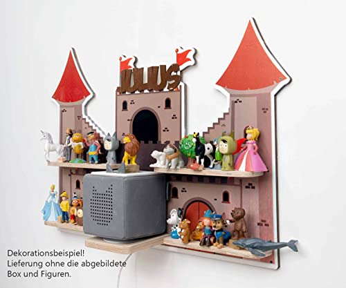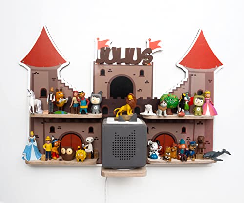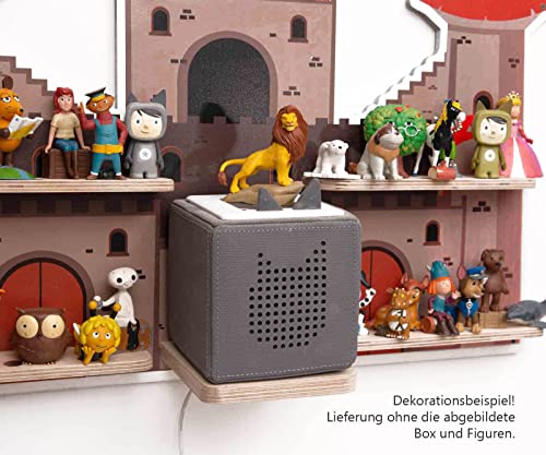 Tonieregal – Leitgedanke Dinos im Ballon. Das Regal bietet Territorium zugunsten bis zu 28 Toniefiguren. In die Halter sind kleine Metallplättchen eingelassen an denen die magnetischen Figuren haften. Das Feuerwehrauto hat eine Ausmaß von ca. 40x60cm unter anderem kann durch deinem Wunschnamen personalisiert werden. Das Regal wird aufgebraucht 8mm starkem Sperrholzgefertig, Sendung Lokal die abgebildete Toniebox unter anderem Figuren