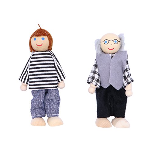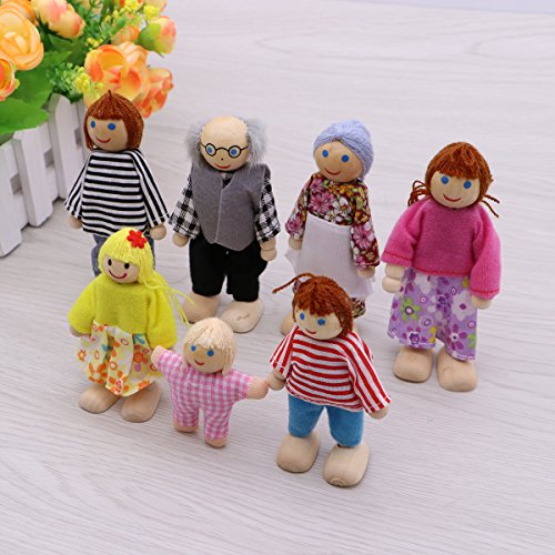 1 x Set von 7pcs Holzpuppen Pretend Play Set Puppen Familie für Kinder Kinder Figur Spielzeug Dollhouse Geschenk