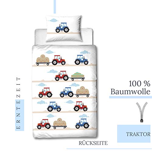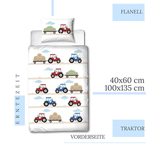 MTOnlinehandel TRAUMHELDEN Traktor Babybettwäsche 135×100 Flanell/Biber, 1 Kissenbezug 40×60 + 1 Bettbezug 100×135 cm…