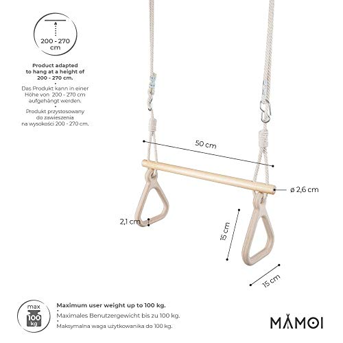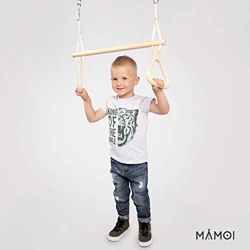 ✔NATÜRLICH: Das Kinder Trapez mit Turnringen von MAMOI mit Höhenverstellung ist das erste 100% natürliche, in der EU aus KIEFERN- UND BUCHENHOLZ hergestellte und entwickelte Spielzeug zum Schaukeln für Kinder und Erwachsene. Die Schaukel ist für Menschen über 3 Jahre alt angebracht. Mehrweckspeilzeug Trapez für Kinder trainiert tiefe Muskeln, wodurch die allgemeine Leistung verbessert wird.