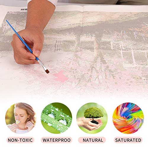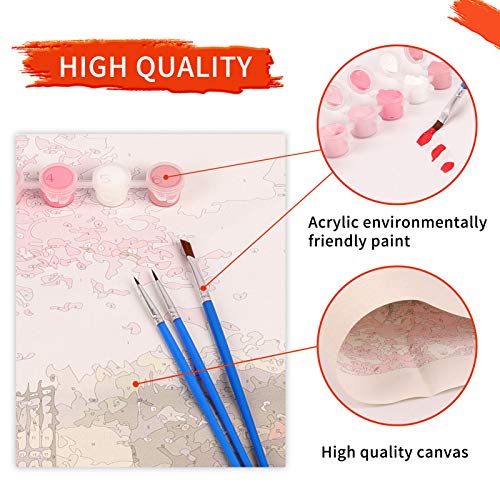 🎨【Malen Nach Zahlen Kits】Möchten Sie ein Meisterwerk haben, das Sie selbst erstellen? DIY Ölgemälde Kit ist eine perfekte Abstimmung. Unser Kit „Malen nach Zahlen“ enthält 1 Leinwand (ohne Rahmen) , 1 Satz Acrylfarbe, 3 Segment Pinsel, 1 Effektbild, 2 Metallnägel, 2 Haken.