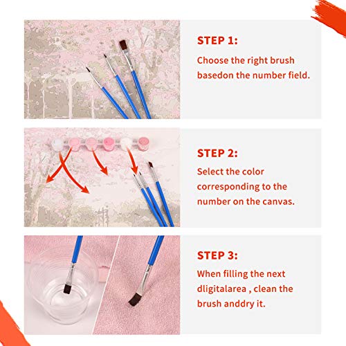 🎨【Herstellungsprozess】Die Zahlen auf dem Farbkasten entsprechen den Zahlen auf der Leinwand. Verwenden Sie den Pinsel, um die entsprechende Farbe zu erhalten und direkt zu malen. Sie können die Malreihenfolge nach Ihren persönlichen Wünschen oder intermittierend anhand der Zahlen festsetzen. Der Malprozess ist besonders einfach.