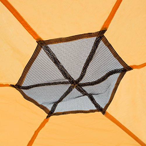Strapazierfähiges Material mit Belüftungsöffnung und Fenstern ganz Netzstoff, verschließbar mit Klett – Spielzelt mit großzügiger Tür, ebenfalls mit Klett und Befestigungsbändern